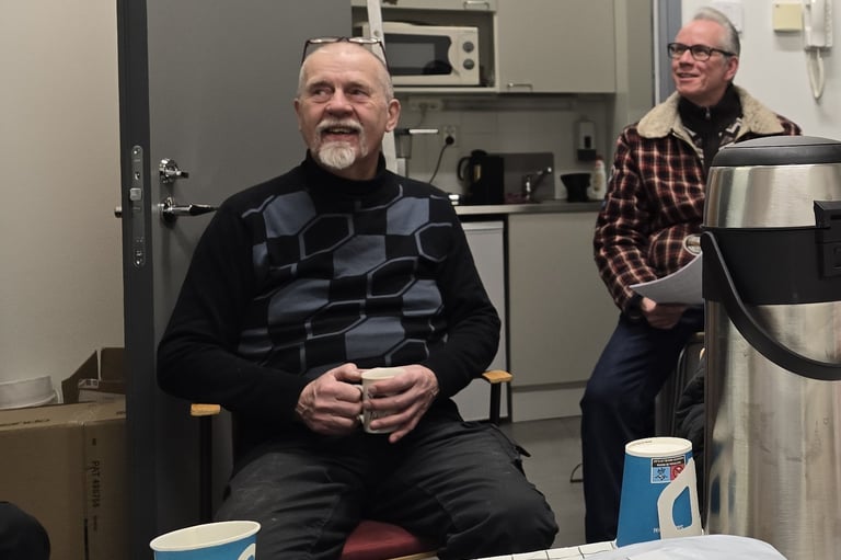 Puheenjohtajamme Timo Tuomisto, usein nähty keltaisella kuplavolkkarilla, joka jytisee ainoastaan vähän. Timo keittelee hyvin kahvit ja soittelee kovasti puheluita.